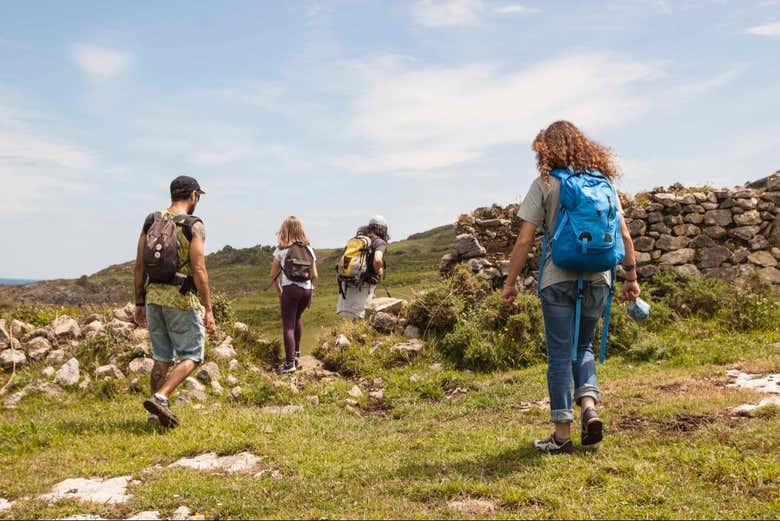 Seguiremos a trilha por um trecho do Caminho de Santiago que percorre a costa leste das Astúrias. Depois de compartilhar as ótimas histórias dessa parte do Caminho, chegaremos ao mirante da praia de Pendueles. Momento da foto!