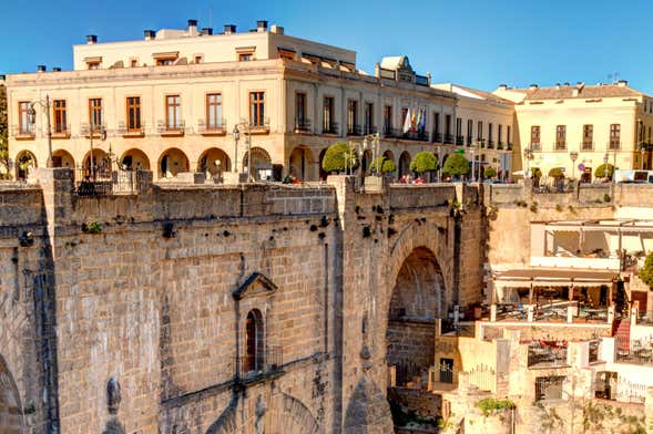 Em nossa visita guiada por essa bela cidade de Málaga, iremos à impressionante Ponte Nova (Puente Nuevo) para ter vistas espetaculares do Tejo de Ronda e das emblemáticas sacadas das casas suspensas localizadas em um penhasco que possui mais de 150 metros de profundidade.
