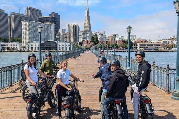 Se você quiser, poderá reservar a modalidade do tour de bicicleta elétrica por São Francisco. Nos encontraremos no mesmo ponto de encontro da modalidade anterior, e começaremos o percurso junto ao parque aquático de Fisherman's Wharf.
