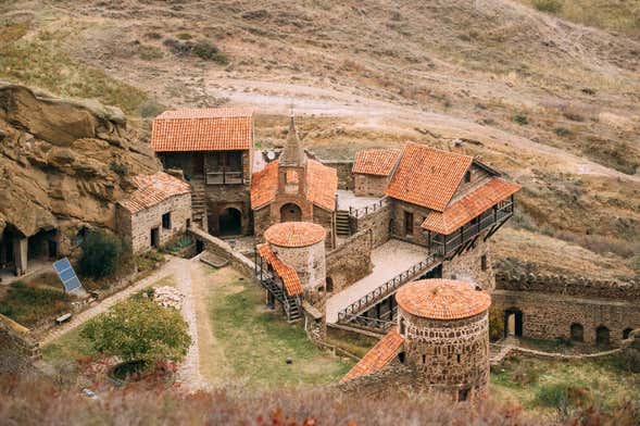 O mosteiro se encontra no deserto do Monte Gareja e, por sua localização privilegiada, é possível contemplar as belíssimas vistas das paisagens áridas dessa zona. Visitaremos o complexo e passearemos admirando suas muralhas defensivas, torres, afrescos milenares e os kenakons, pequenos quartos.