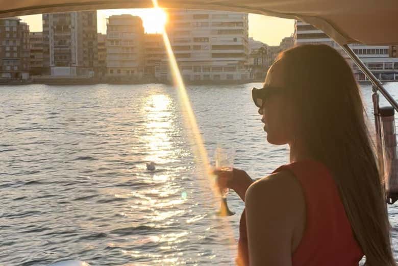 Enquanto você contempla todas essas paisagens, lhe serviremos uma taça de cava. Você poderá brindar em frente à baía de Torrevieja! Será um dos momentos mais especiais deste passeio de barco ao entardecer, que sem dúvida ficará para sempre gravado na sua memória.