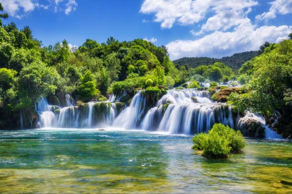 Percorreremos algumas de suas veredas para observar de perto as imponentes quedas d'água que fazem do Parque Nacional das Cascatas Krka um dos espaços naturais mais famosos da Croácia.